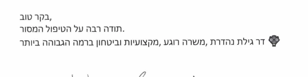 שירות מעולה ,יחס אישי חם ,ממליץ עליה בחום